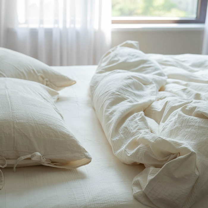 Bộ chăn ga gối Cotton sọc wash màu trắng 1.6mx2m, 1.8mx2m, 2mx2